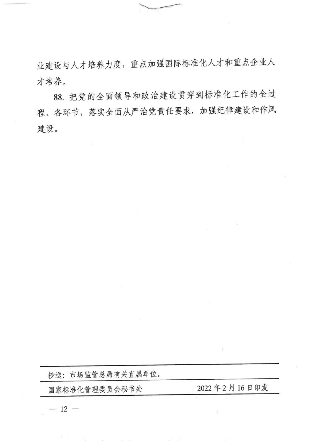 國家標(biāo)準(zhǔn)化管理委員會(huì)關(guān)于印發(fā)《2022年全國標(biāo)準(zhǔn)化工作要點(diǎn)》的通知