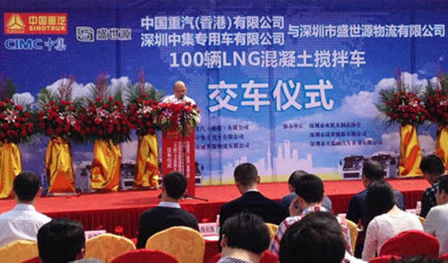 這批100輛LNG的大訂單,是深圳市首次大批量進(jìn)入的LNG攪拌車,由深圳市晟世能源有限公司和深圳市盛世源物流有限公司聯(lián)合投資,將采用LNG撬裝加氣站方式,為前海片區(qū)的混凝土攪拌站提供第三方物流服務(wù)。盛世源物流董事長劉宇明說,之所以選擇中國重汽的LNG水泥攪拌車,一則是處于對中國重汽LNG卡車技術(shù)的信賴,二則是因為地方政府對企業(yè)使用環(huán)保車輛給予大力支持。