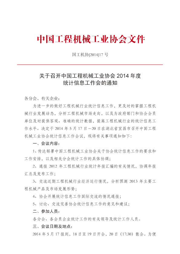 國(guó)工機(jī)協(xié)2014年17號(hào)文協(xié)會(huì)統(tǒng)計(jì)工作會(huì)議通知