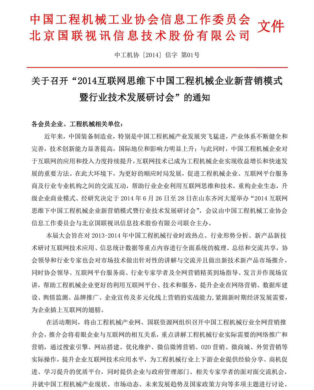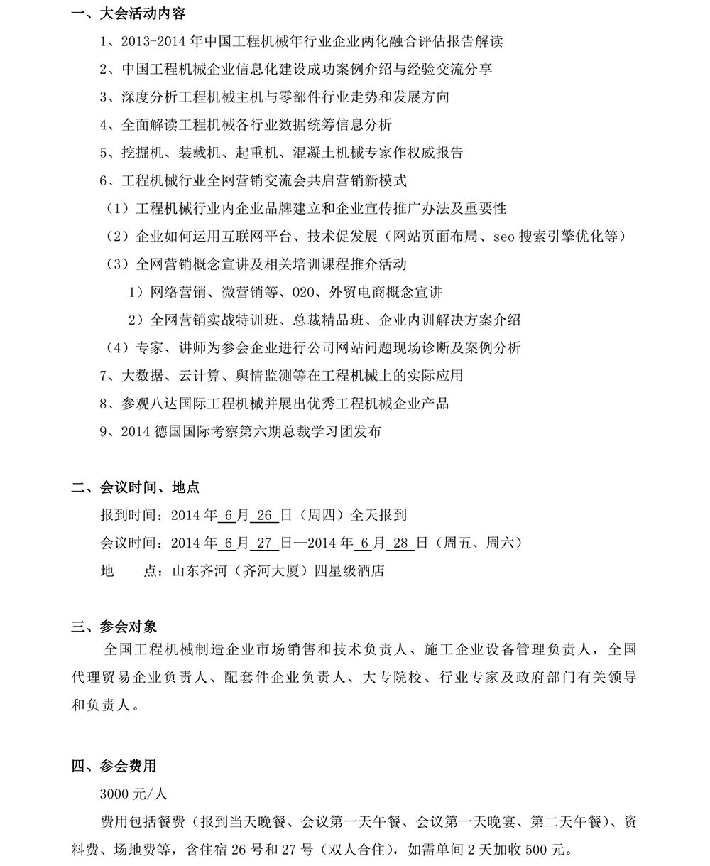 關于召開“2014互聯(lián)網(wǎng)思維下中國工程機械企業(yè)新營銷模式暨行業(yè)技術發(fā)展研討會”的通知