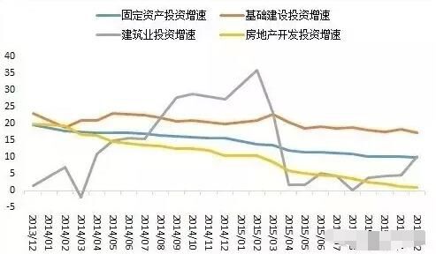 2015年,全國(guó)固定資產(chǎn)投資(不含農(nóng)戶)551590億元,比上年名義增長(zhǎng)10%(扣除價(jià)格因素,實(shí)際增長(zhǎng)12%),增速比1-11月份回落0.2個(gè)百分點(diǎn)。從環(huán)比速度看,12月份固定資產(chǎn)投資(不含農(nóng)戶)增長(zhǎng)0.68%。建筑業(yè)固定資產(chǎn)投資總額4895億元,同比增長(zhǎng)10.2%,增速較1-11月提高了5.4個(gè)百分點(diǎn)。今年以來(lái),制造業(yè)投資大勢(shì)已去,房地產(chǎn)投資降至歷史低點(diǎn)且尚未見底。由于基建投資具有逆周期特性且保持快速增長(zhǎng),穩(wěn)增長(zhǎng)寄希望于基建投資托底。發(fā)改委更是密集批復(fù)基建項(xiàng)目助力穩(wěn)增長(zhǎng)?;A(chǔ)設(shè)施投資(不含電力)101271億元,比上年增長(zhǎng)17.2%,增速比1-11月份回落1個(gè)百分點(diǎn)。其中,水利管理業(yè)投資增長(zhǎng)21%,增速回落2.3個(gè)百分點(diǎn);公共設(shè)施管理業(yè)投資增長(zhǎng)20.2%,增速回落0.3個(gè)百分點(diǎn);道路運(yùn)輸業(yè)投資增長(zhǎng)16.7%,增速回落0.8個(gè)百分點(diǎn);鐵路運(yùn)輸業(yè)投資增長(zhǎng)0.6%,增速回落0.2個(gè)百分點(diǎn)。
